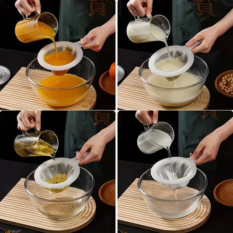 This fine mesh filter and strainer is designed for precise liquid filtration, helping you achieve smooth, clean results when straining juices, sauces, syrups, oils, and other liquids. The durable frame and fine nylon mesh make it ideal for both kitchen use and specialised filtering applications.