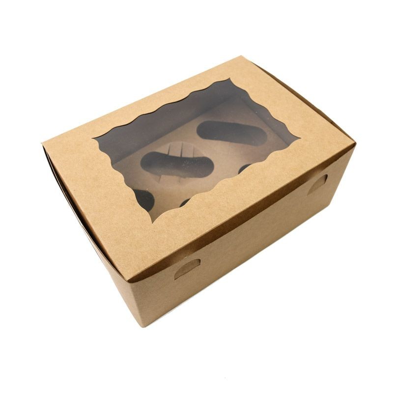 6 cupcake Brown Cupcake Box with PVC Window Bake Group