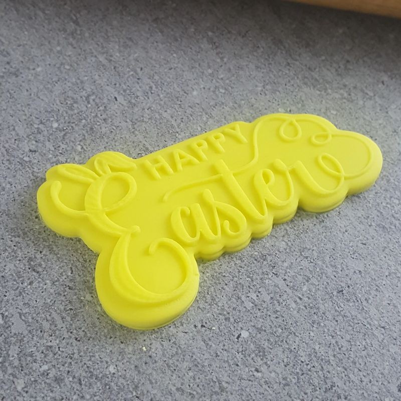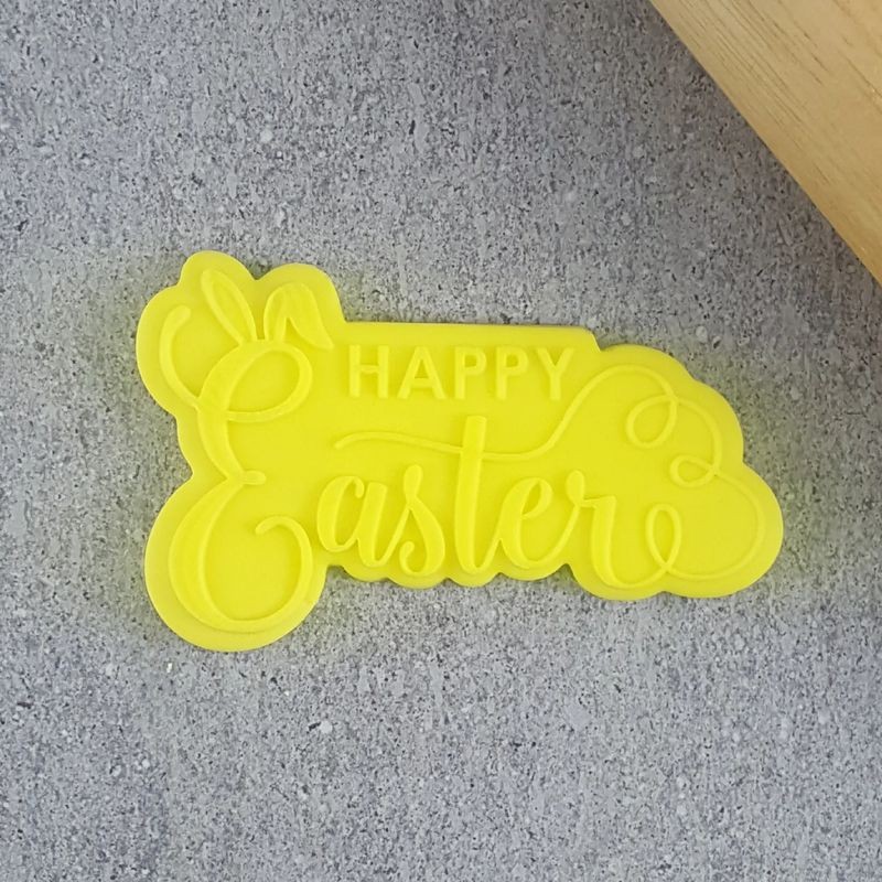 Celebrate Easter by creating a batch of handmade cookies using the "Happy Easter" debosser and cutter set from Custom Cookie Cutters.