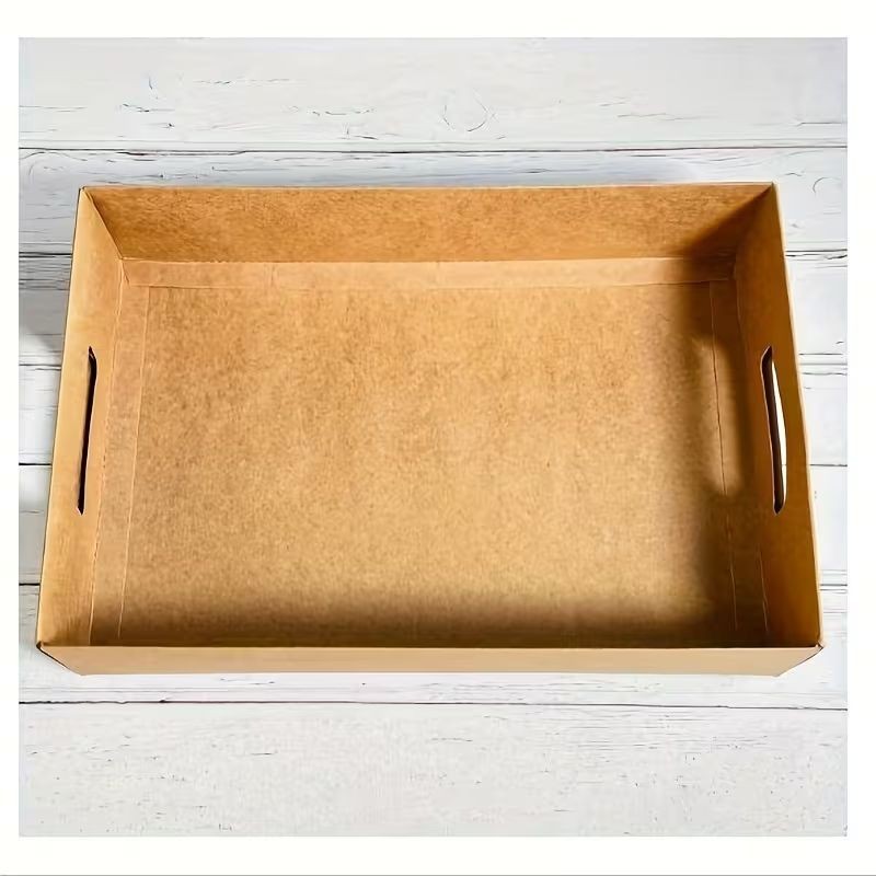 Crafted from durable, food-safe kraft board, it offers a natural, rustic look that pairs beautifully with everything from charcuterie and cheeses to sandwiches, pastries, and desserts. The built-in carry handles make transport simple and secure—ideal for events, picnics, and on-the-go catering.