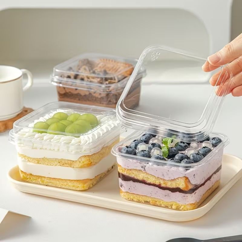 Made from durable, food-safe plastic, each box offers excellent clarity to highlight your creations while keeping them fresh and protected. The modern square design provides a clean, professional look—perfect for bakeries, catering, events, or takeaway desserts.