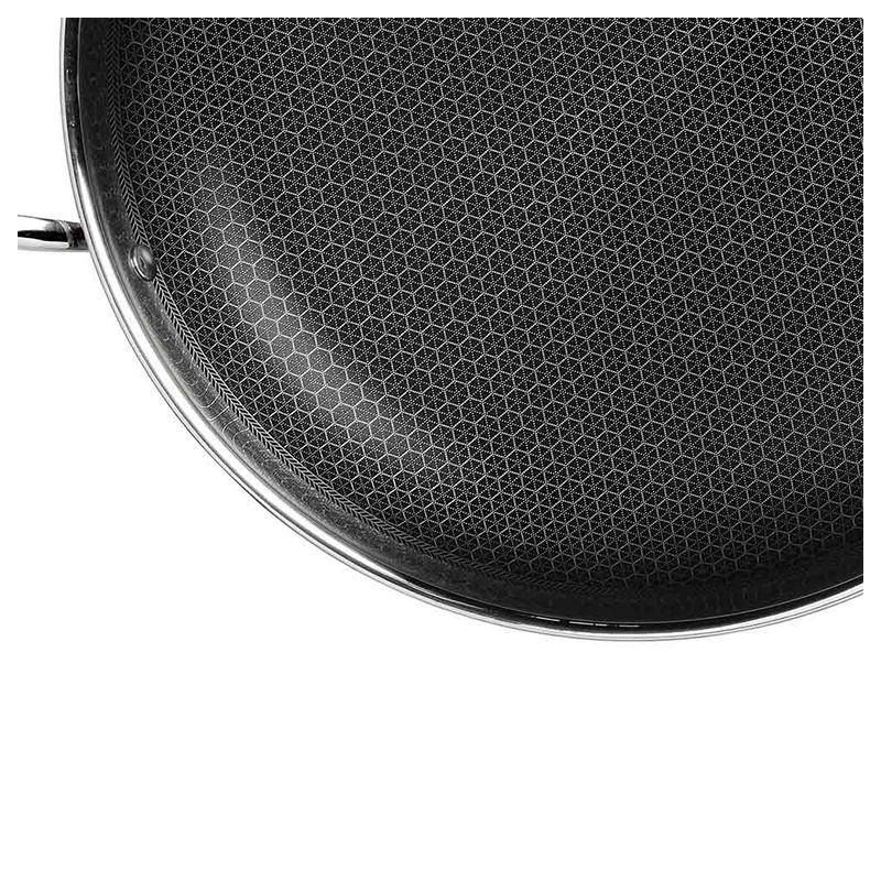 Hybrid performance of stainless steel and non-stick - great for searing and browning with the benefit of non-stick.
