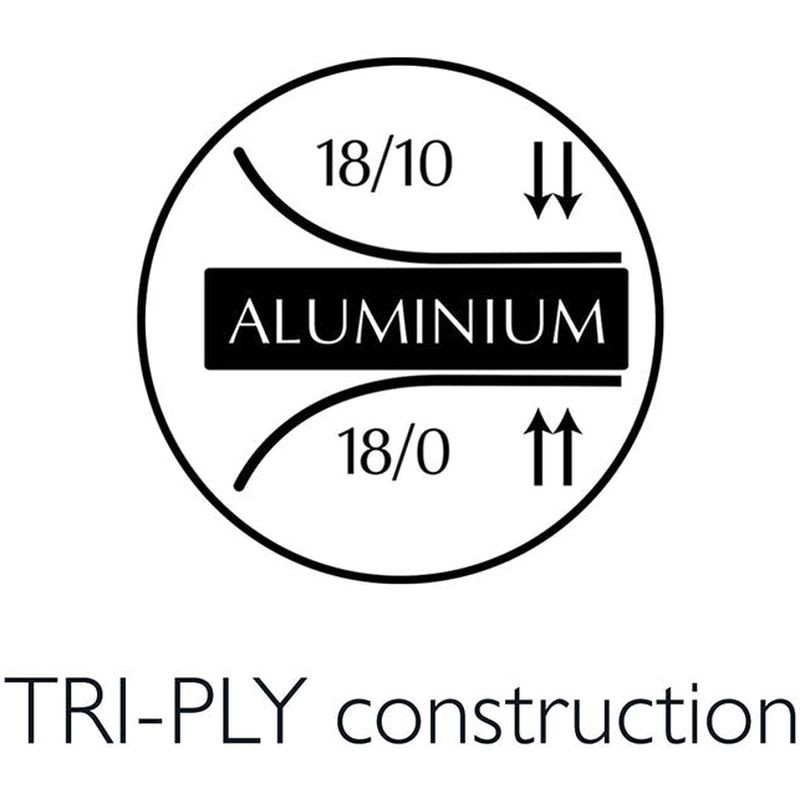 - TRI-PLY construction. Premium 18/10 stainless steel interior, rapid heat conducting aluminium core and magnetic stainless steel exterior.