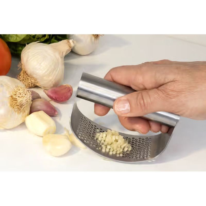 Elevate your culinary experience with the Cuisena Stainless Steel Garlic Rocking Press. This sleek and durable kitchen tool is designed for effortless garlic mincing. Its ergonomic design ensures a smooth rocking motion, allowing you to crush garlic cloves quickly and efficiently.