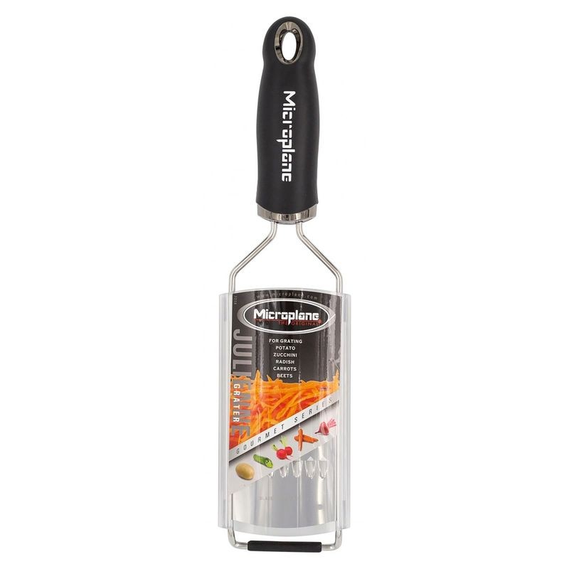 The Microplane Gourmet Julienne Grater has an expansive paddle with ample grating surfaces and US made stainless steel blades.