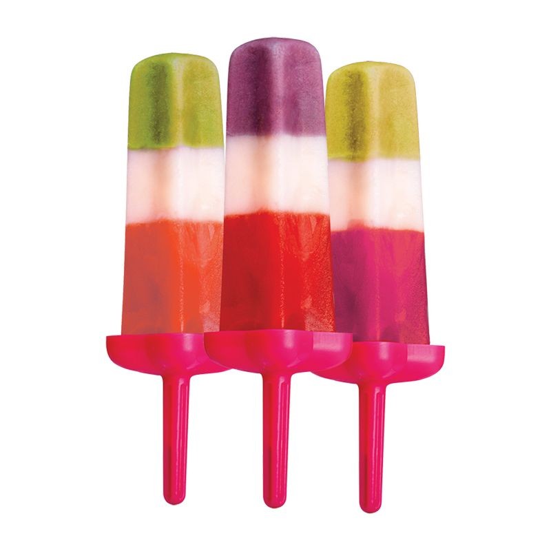 Food safe and BPA-free, these ice pop moulds have a handy drip-guard handle and come with an included base for easy, mess free storage and freezing.