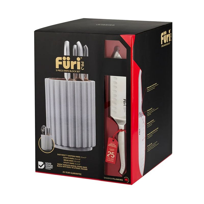 The Furi Radial Stone knife block has been artfully crafted to complement wooden and stone kitchen finishes and to be the centrepiece of your kitchen.