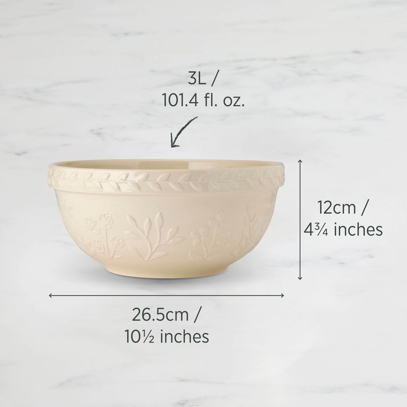 Meet the mixing bowl that bring everyday baking back to its beautiful best. Our Baking Traditions 26.5cm bowl is sturdy, microwave and dishwasher safe, and comfortable to use. Featuring a timeless raised floral pattern for that touch of charm and finished in soft vanilla, it's as delightful to display as it is to use.