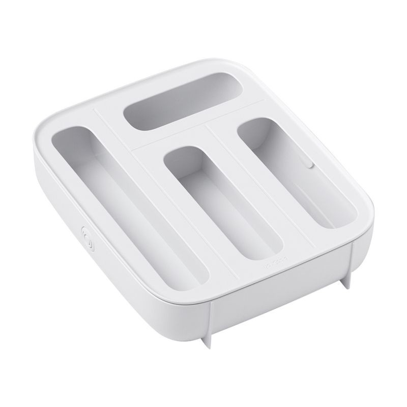 The StoraBag™ Food Bag Dispenser from YouCopia keeps all your food storage bags in one tidy organiser. 4 Individual compartments hold standard size plastic bags in any drawer or cabinet while reducing box clutter. 2